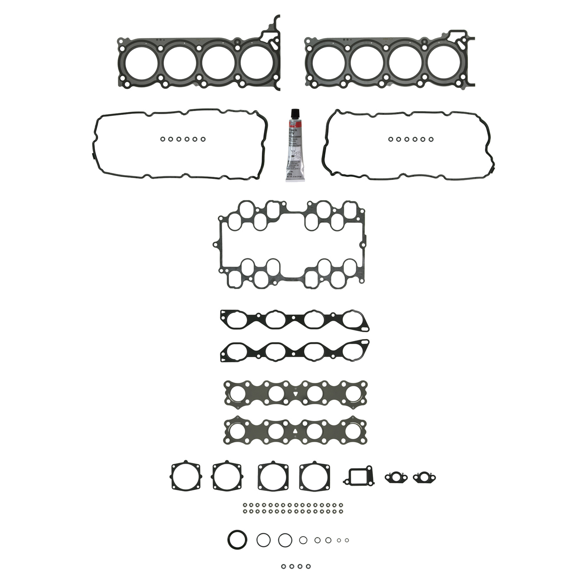 2003-2004 INFINITI M45 (Liter: 4.5 & Engine(cc): 4500 & Cylinder: 8 & Block: V & Bore(in): 3.60 & Bore(mm): 93.0 & Stroke(in): 3.26 & Stroke(mm): 82.7 / Qualifier: Head Bolts Not Included, Head Bolt Replacement Recommended, Premium Valve Stem Seals Included, PermaDry Molded Rubber Valve Cover Gasket(s) Included); 2002-2006 INFINITI Q45 (Liter: 4.5 & Engine(cc): 4494 & Cylinder: 8 & Block: V & Bore(in): 3.60 & Bore(mm): 93.0 & Stroke(in): 3.26 & Stroke(mm): 82.7 / Qualifier: Head Bolts Not Included, Head Bolt Replacement Recommended, Premium Valve Stem Seals Included, PermaDry Molded Rubber Valve Cover Gasket(s) Included); 2003-2006 INFINITI FX45 (Liter: 4.5 & Engine(cc): 4500, 4494 & Cylinder: 8 & Block: V & Bore(in): 3.60 & Bore(mm): 93.0 & Stroke(in): 3.26 & Stroke(mm): 82.7 / Qualifier: Head Bolts Not Included, Head Bolt Replacement Recommended, Premium Valve Stem Seals Included, PermaDry Molded Rubber Valve Cover Gasket(s) Included, To 10/31/2005)